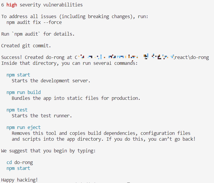 패키지가 전부 완료되면 이렇게 명령어를 알려주면서 끝난다.