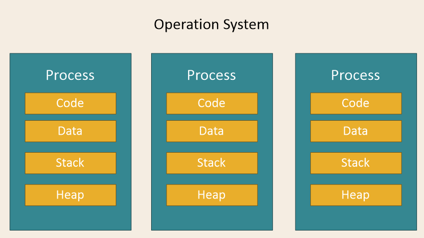 단점 : 각각 독립된 메모리 영역을 갖고 있어, 작업량 많을수록 오버헤드 발생. Context Switching으로 인한 성능 저하