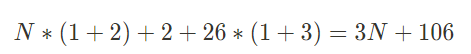 이렇게 이중 for문이 쓰였고, for문 하나마다 배열 길이만큼 2번이 연산되고, 비교 연산 if문이 1번 실행되고 break 되었으므로 이 만큼의 시간이 필요하다. 여기서 array(입력값)의 길이는 보통 N이라고 표현하고, 위의 시간을 다음과 같이 표현할 수 있다.