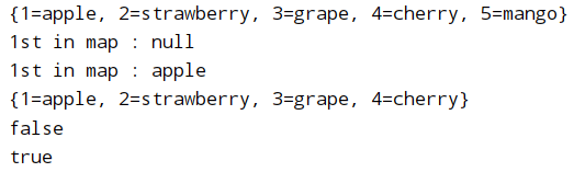 System.out.println("1st in map : " + map.get(0)); // index가 아니라 key값을 줘야하니까 null이 나옴!