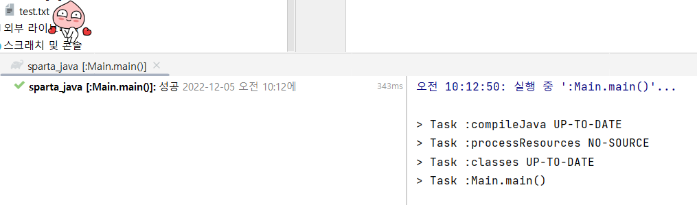 에러가 발생하지 않는 코드이기 때문에 콘솔에는 아무 것도 표시되지 않지만 왼쪽 메뉴바에 보면 test.txt 파일이 생성된 것을 확인 할 수 있다.